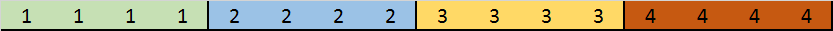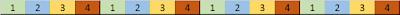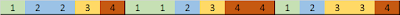 The previous multi-streams format produced an entangled output, where each stream contributes regularly to 1-in-4 symbols, as shown below :